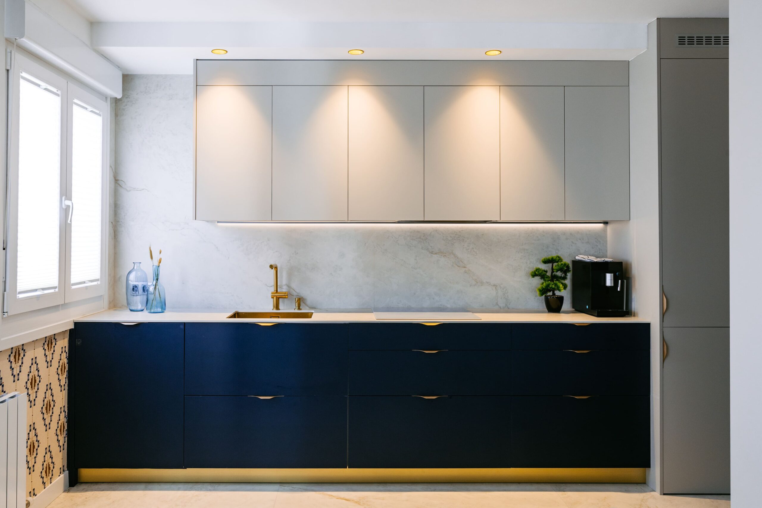 Este proyecto de diseño de interiores nace con el objetivo de crear un hogar abierto donde cocina y salón se integran sin barreras, potenciando la luz natural, la amplitud y la vida en común.